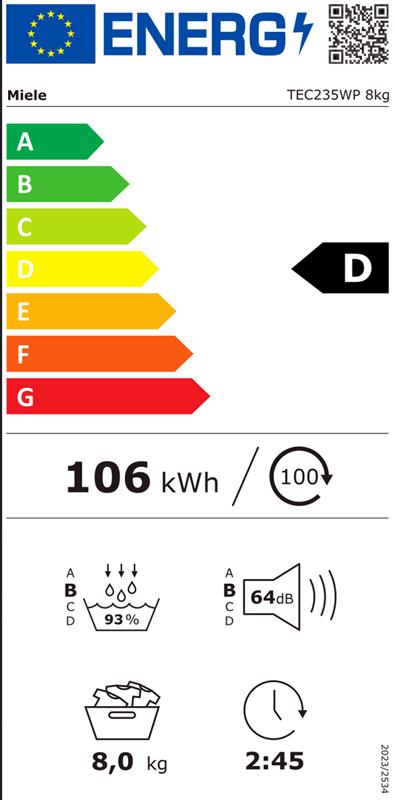 MIELE TEC 235 WP 8kgKondenstrockner, EEK: DWärmepumpentechnik schräge Blende Art.-Nr.: 0355208 Abb. ähnlich