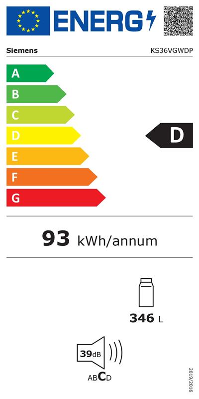 SIEMENS KS36VGWDP weissVollraum-StandkühlschrankE-Klasse: D, 346 Liter H1860, B600, T650 Art.-Nr.: 0778402 Abb. ähnlich