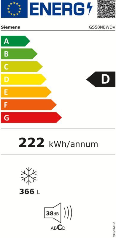 Siemens GS58NEWDV NF MMWStand-Gefrierschrank EEK: DnoFrost, 360 l Nutzinhalt superGefrieren,LED-Beleuchtung Maße: 191 x 70 x 78 cm Art.-Nr.: 1378901 Abb. ähnlich