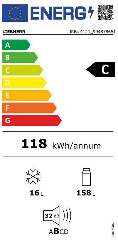 LIEBHERR IRBc 4121-22 122cmEinbau-Kühlschrank FesttürEEK: C, BioFresh, 4-Sterne Rauminhalt Kühlen: 158 l Rauminhalt Gefrieren: 16 l Art.-Nr.: 1450433 Abb. ähnlich
